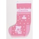 Маленький обладатель (маленькая обладательница) сможет самостоятельно складывать детали конструктора или предметы гардероба своей куклы в вязаный носок с собственным именем!